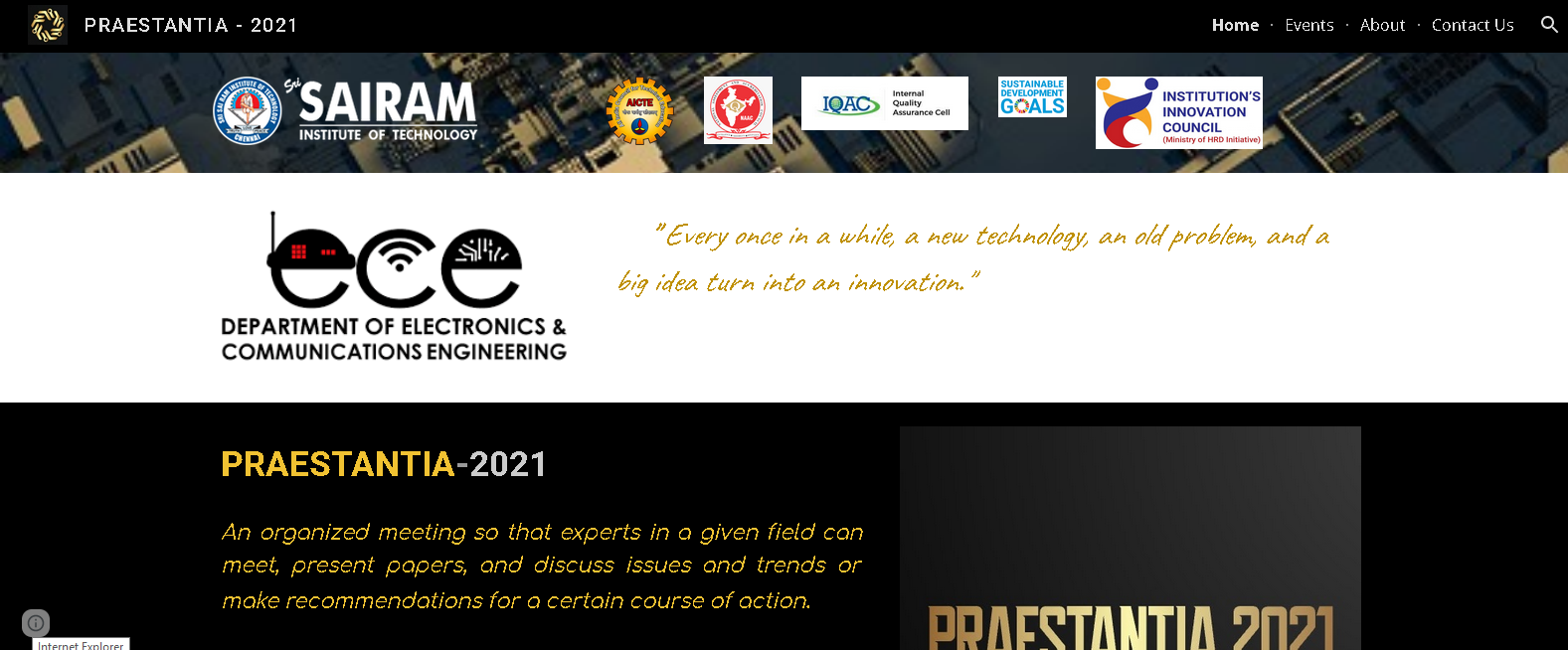 Praestantia 2021 Sri Sairam Institute of Technology Chennai Tamil Nadu October 2021 Technical Fests Technical Fests in Chennai 2021 Technical Fests in Tamil Nadu Symposiums Symposiums in Chennai 2021 Symposiums in Tamil NaduFeatured Events