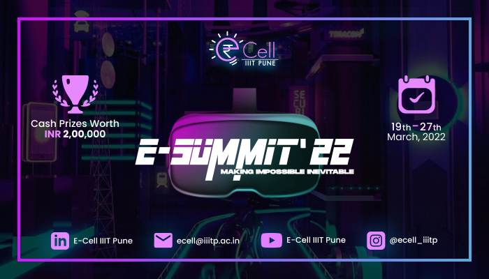 E-Summit 22, Indian Institute of Information Technology Pune, Entrepreneurship Summit, Pune, Maharashtra, 19th - 27th March 2022