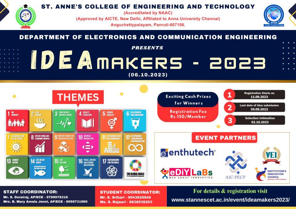 IDEAMAKERS 2023, St Annes College of Engineering and Technology, Idea Presentation Event, Panruti, Tamil Nadu, 6th October 2023