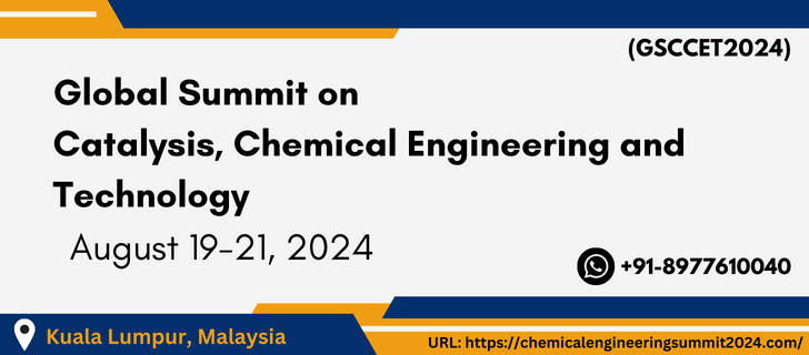Apex Global Meetings is delighted to announce and cordially invite all the participants across the globe to attend Global Summit on Catalysis, Chemical Engineering and Technology (GSCCET2024), which will be taking place during August 19-21, 2024, in Kuala Lumpur, Malaysia. The Theme of the Conference Highlights: Decadal Overview of Recent Trends and Innovations Changing in Catalysis and Chemical Engineering. Scientific Tracks designed for this conference will enable the attendees and participants to learn extremes.