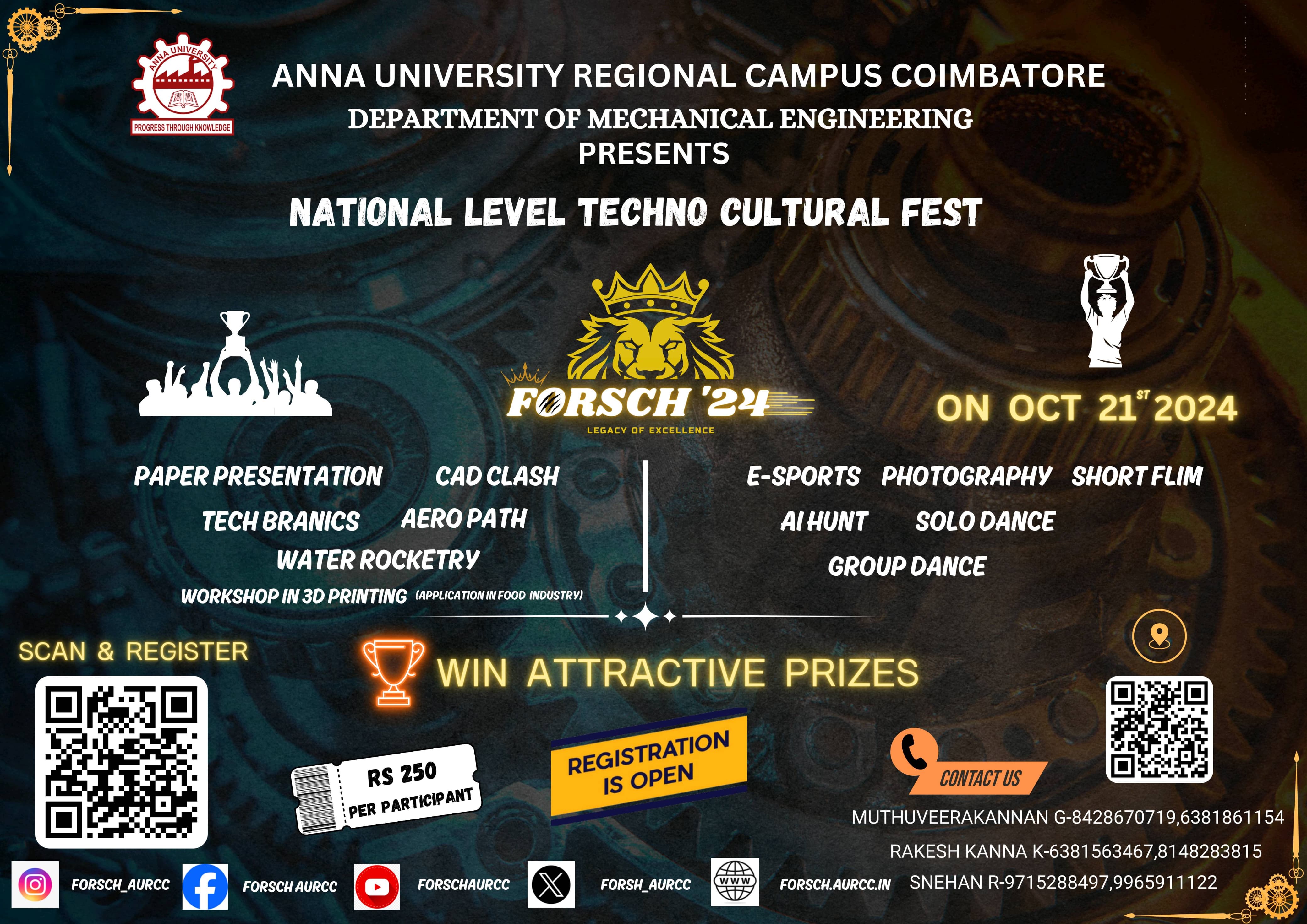 FORSCH'24, Anna University Regional Campus Coimbatore, Technical Symposium, Coimbatore, Tamil Nadu, 21st October 2024