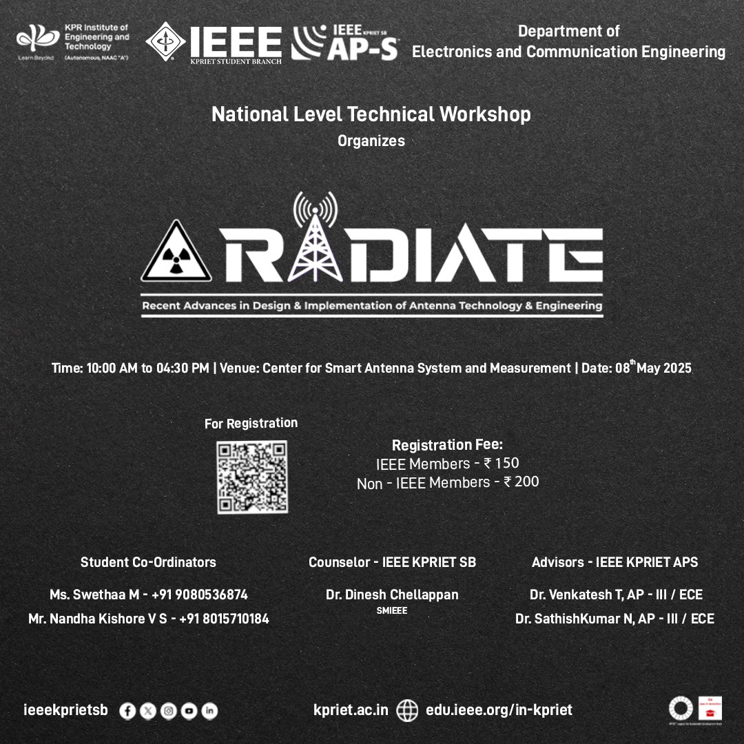 RADIATE 2025, KPR Institute of Engineering and Technology, Workshop, Coimbatore, Tamil Nadu, 8th May 2025