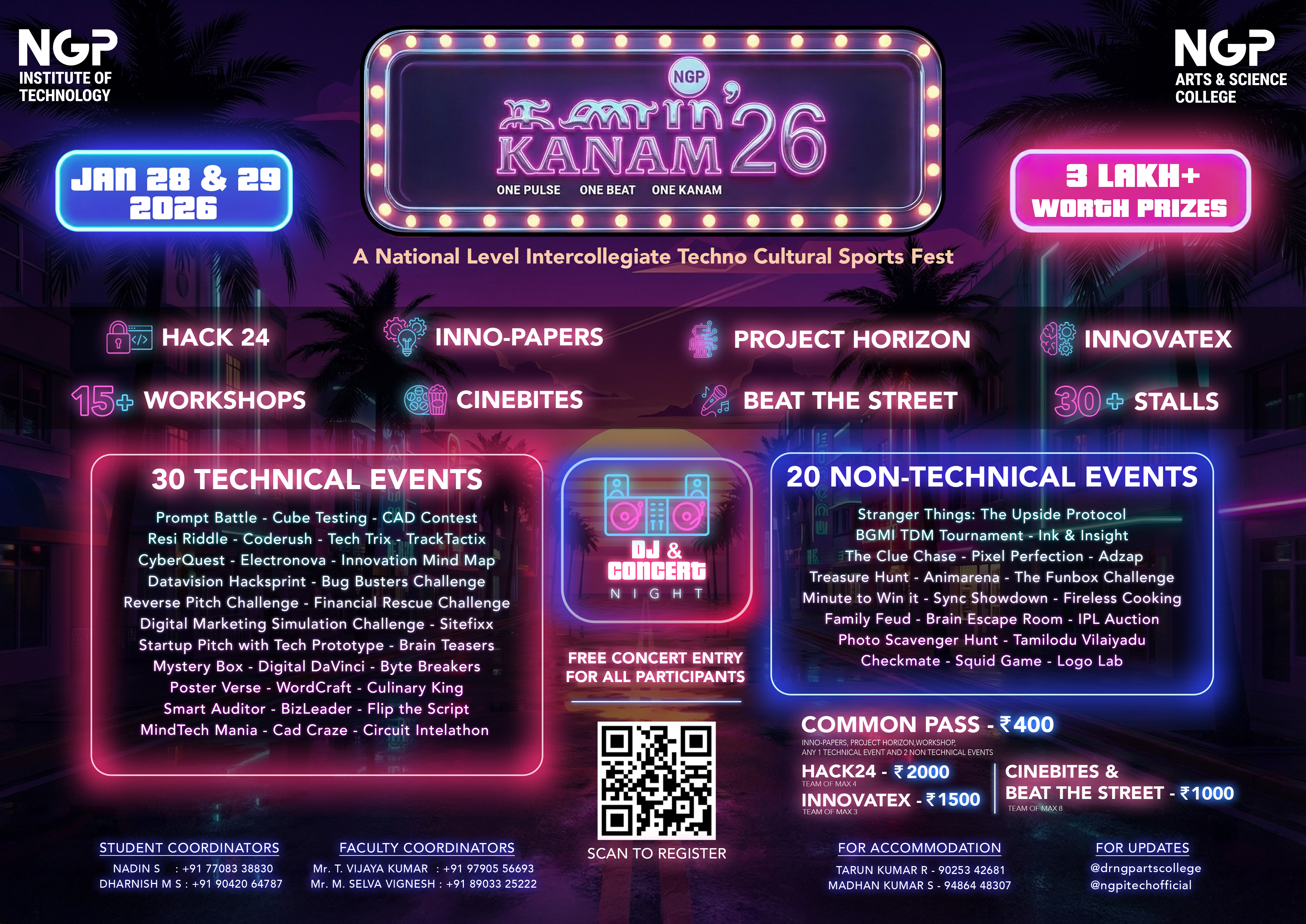 Dr. N.G.P. Institute of Technology and Dr. N.G.P. Arts and Science College, Coimbatore, presents KANAM’26, A National Level Intercollegiate Techno Cultural Sports Fest scheduled for 28 &29 JANUARY 2026.